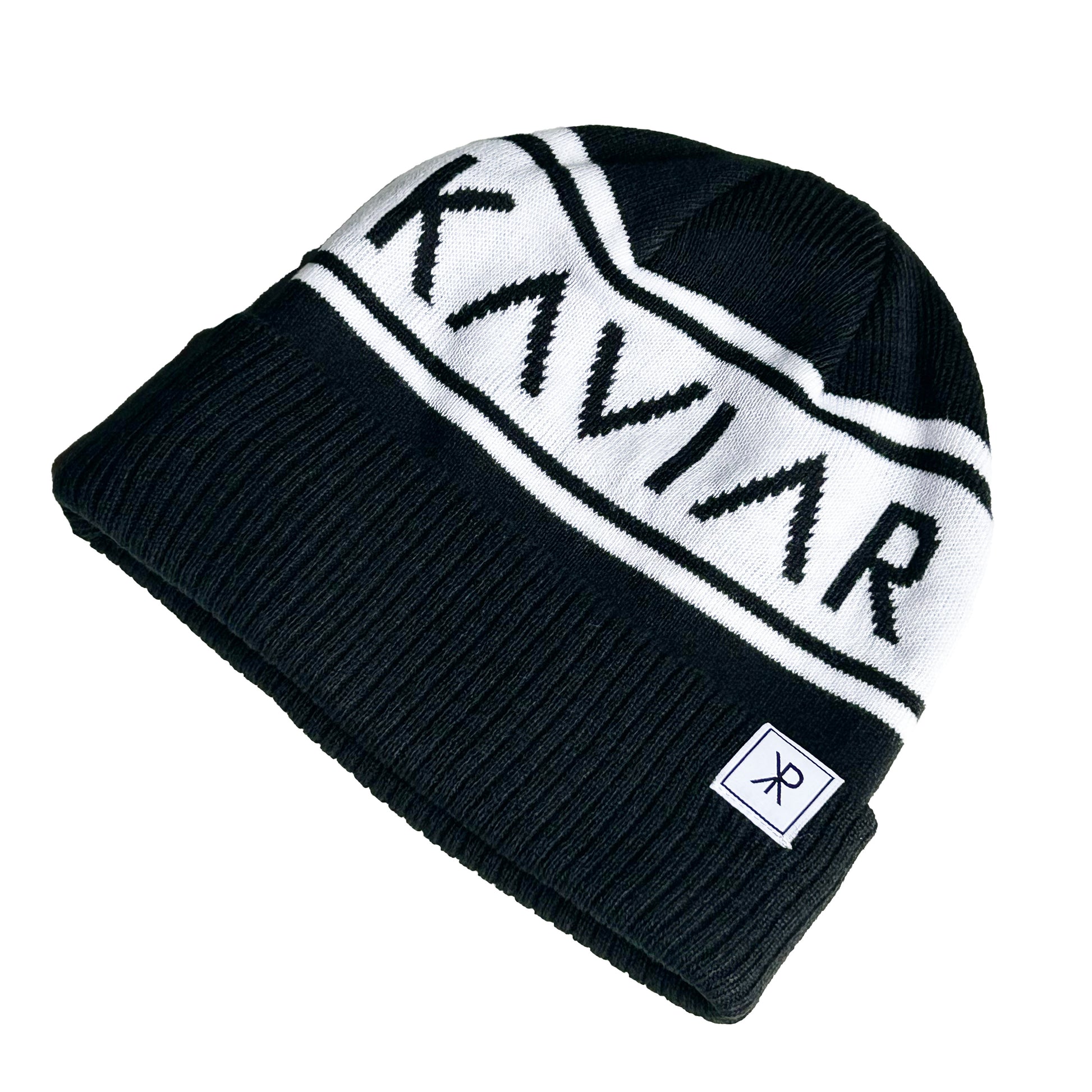 Stay warm and fashionable with the Kaviar branded knit cuff beanie, a versatile addition to your winter wardrobe that seamlessly blends comfort and style.